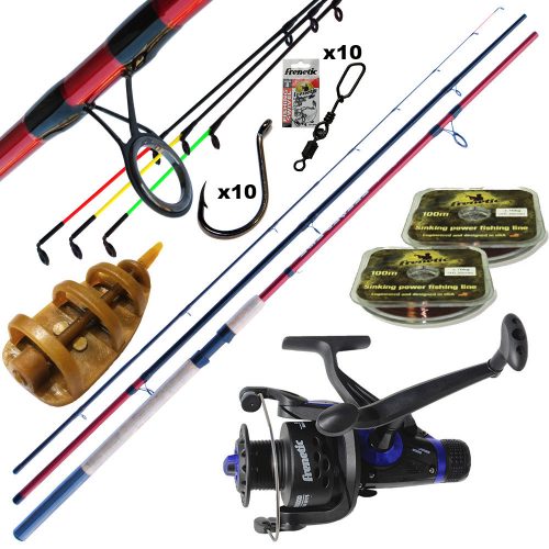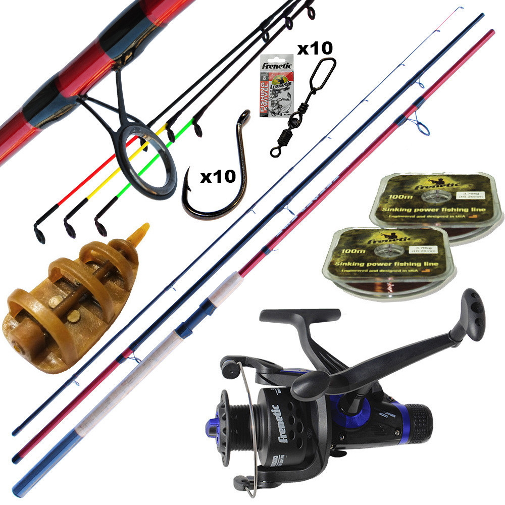A szett tartalmaz egy rendkívül strapabíró botot ( Frenetic Fire Feeder 3,6m 180gr ) és egy 60-s nyeletőfékes 2csapággyal és multistoppal ellátott orsót( Frenetic Easy Runner ).199méter 0,20zsinórt ( Frenetic) , egy etetőkosarat,egy csomag horgot ( Frenetic) és egy csomag forgókapcsot.