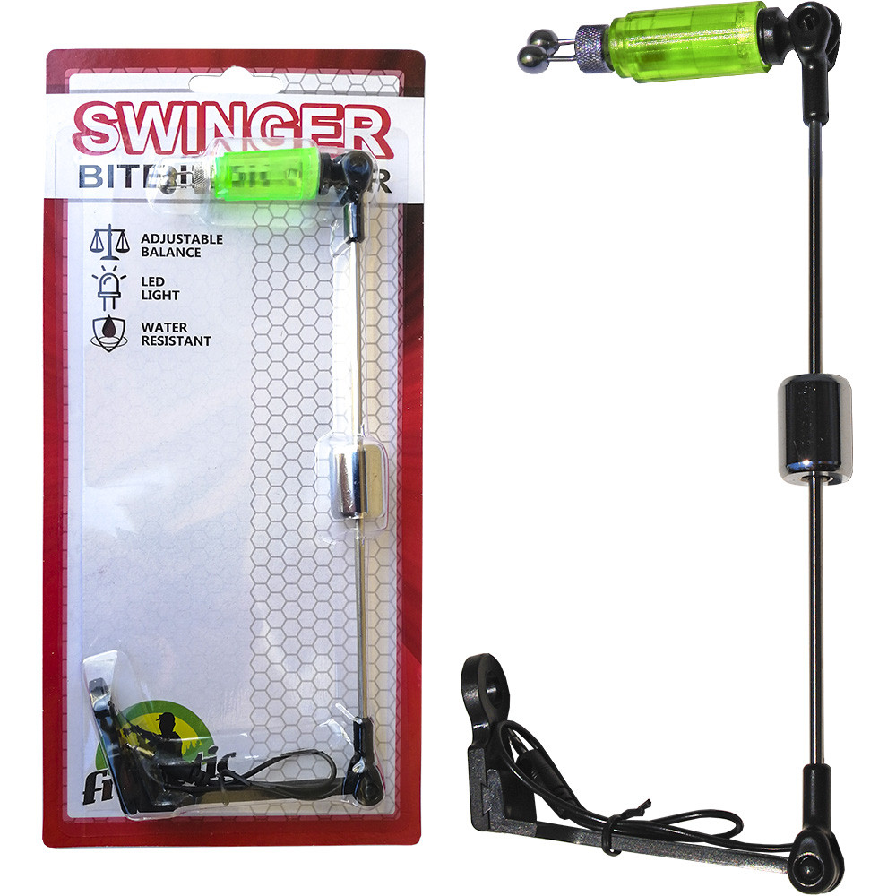 Hagyományos fém zsinórakasztóval rendelkező e-swinger aminek a karja és a rajta lévő állítható súly is fém. Csatlakozása minden hagyományos  elektromos kapásjelzővel (ha rendelkezik bemenettel) kompatibilis.
