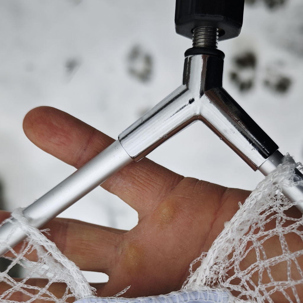 Fém ipszilonos szövött monofil merítőfej. Modern, szövött monofil hálóval, amely ötvözi a monofil szagmentességét a szövött szerkezet kiemelkedő szakítószilárdságával.